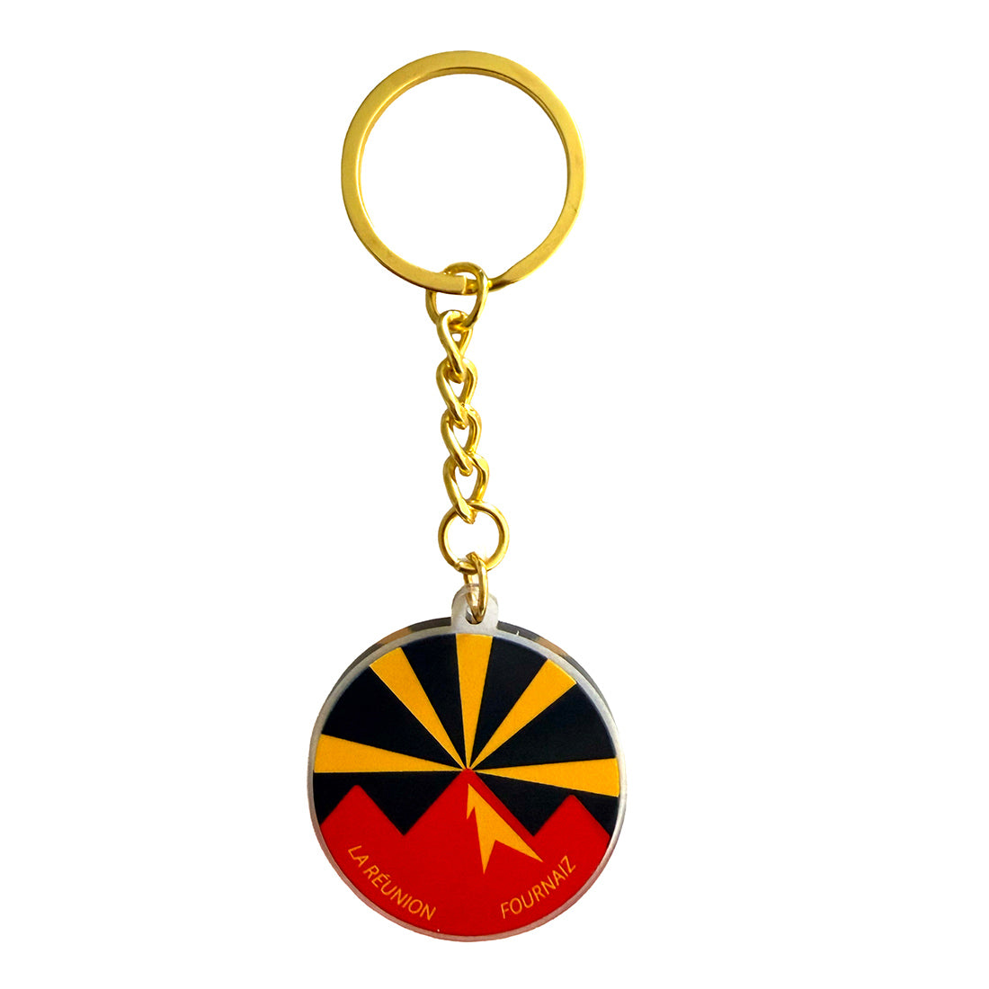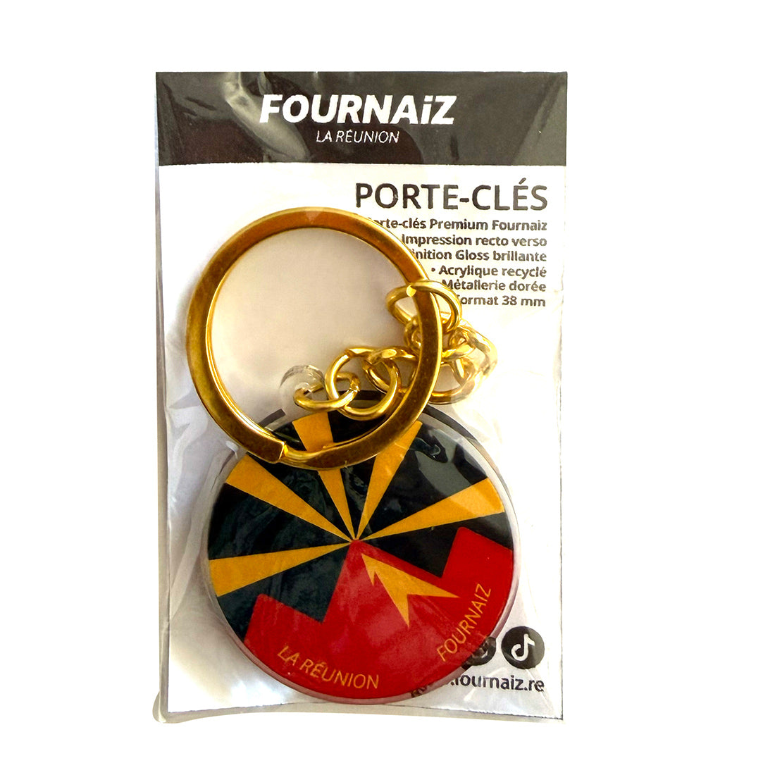 Porte-clés Premium Drapeau RéunionNout' Drapeau ! Représente La Réunion avec ce porte-clés doré aux couleurs de notre île- Impression Recto Verso- Finition Gloss Brillante- Acrylique recyclé- Métallerie doré- Format 38 mm